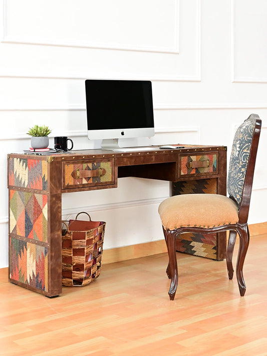 WALES_ LEATHER & KILIM OFFICE TABLE