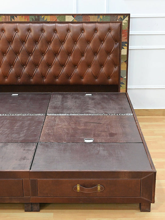 CARUS- WOODEN DOUBLE BED WITH KILIM & LEATHER