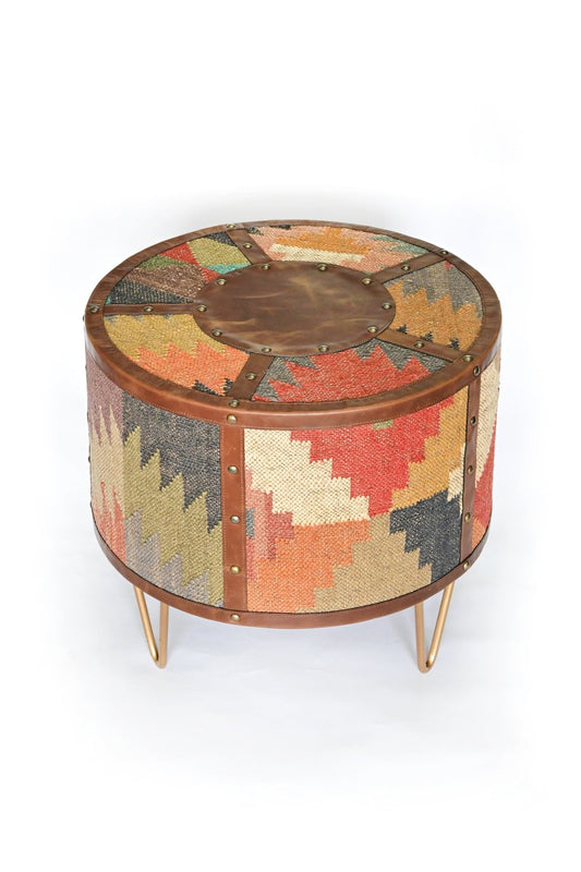 ESTELLE - KILIM & LEATHER OTTOMAN