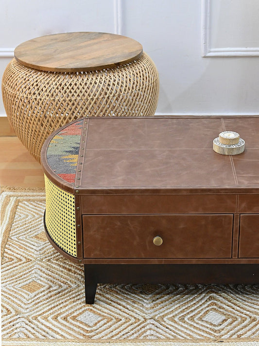 RUSTIC COFFEE TABLE - KILIM AND LEATHER