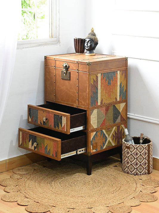ACCENT CHEST OF DRAWERS - KILIM AND LEATHER