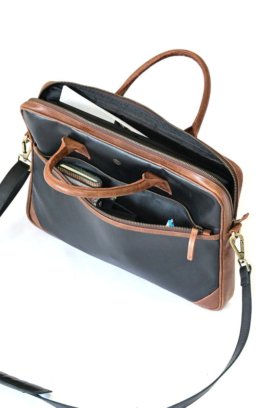 OLIVIA - LEATHER LAPTOP BAG WITH LEATHER STRAP