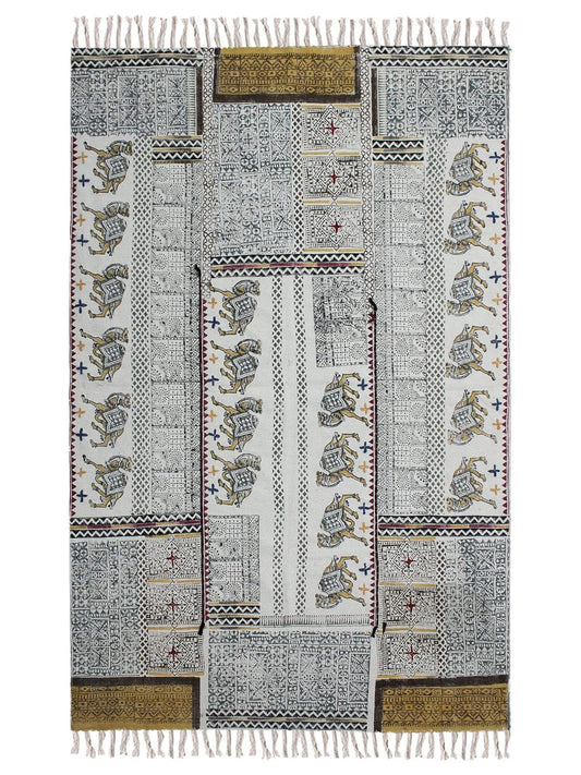 OFFLAVISH BLOCK PRINTED COTTON RUG