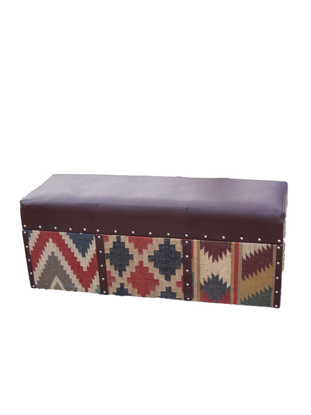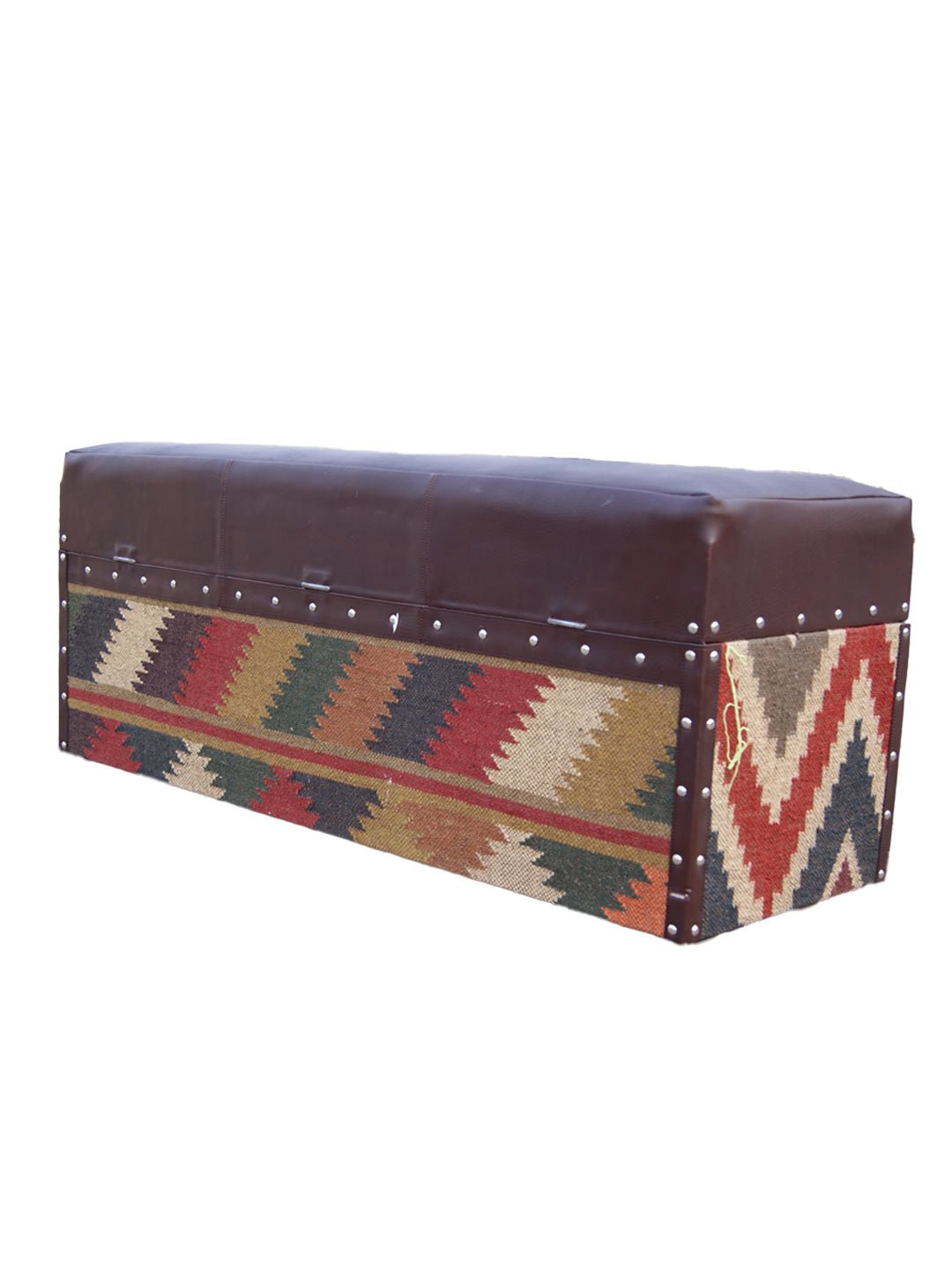 EIFFEL TRUNK OTTOMAN IN KILIM AND LEATHER