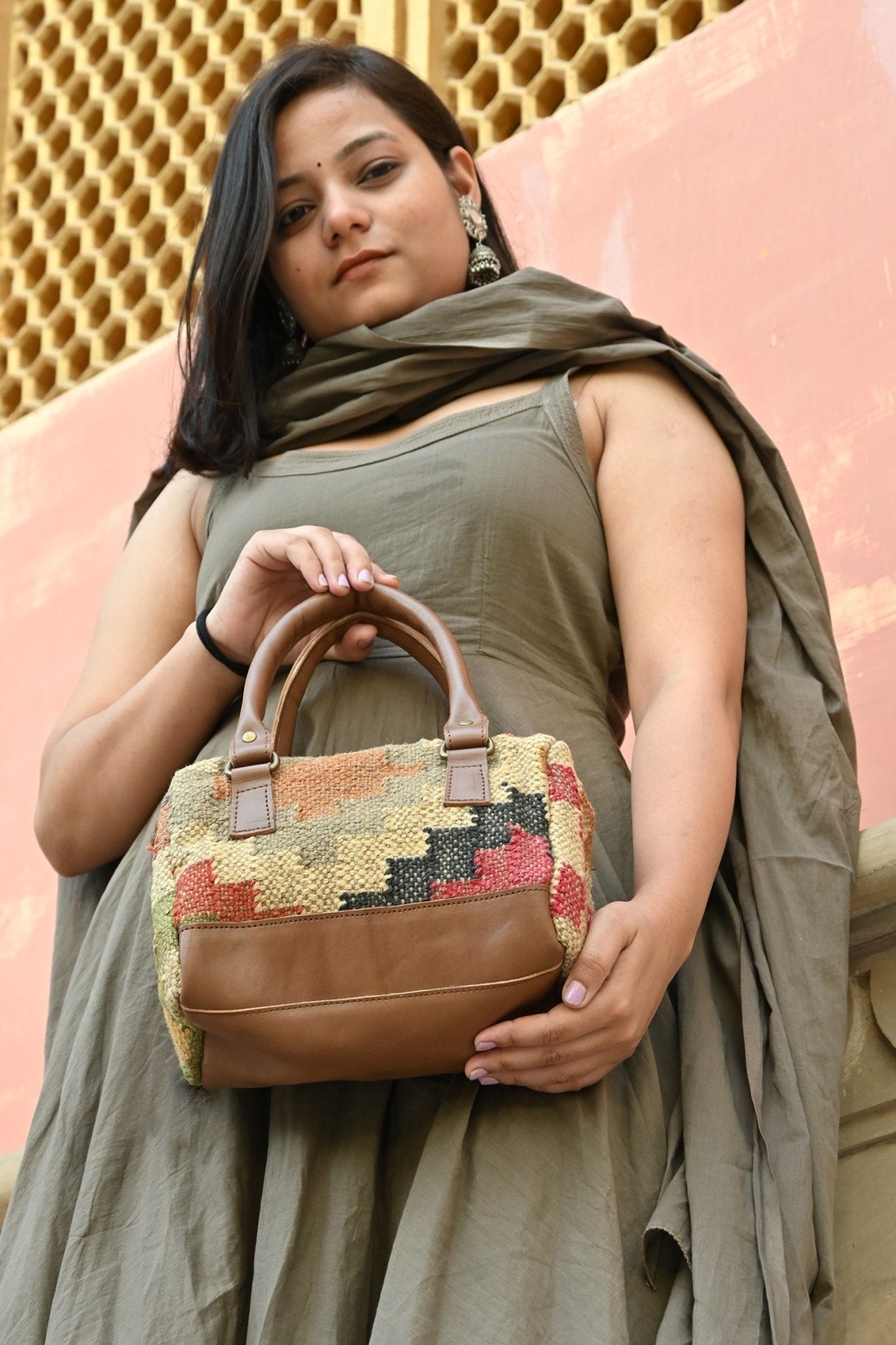 NATALIE - PRINTED KILIM & LEATHER HAND BAG