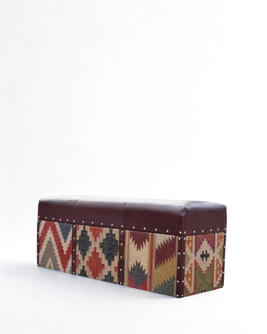 EIFFEL TRUNK OTTOMAN IN KILIM AND LEATHER
