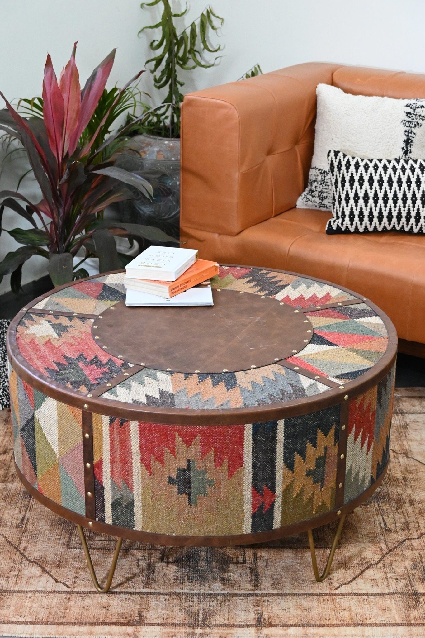 GOROUND COFFEE TABLE - KILIM AND LEATHER