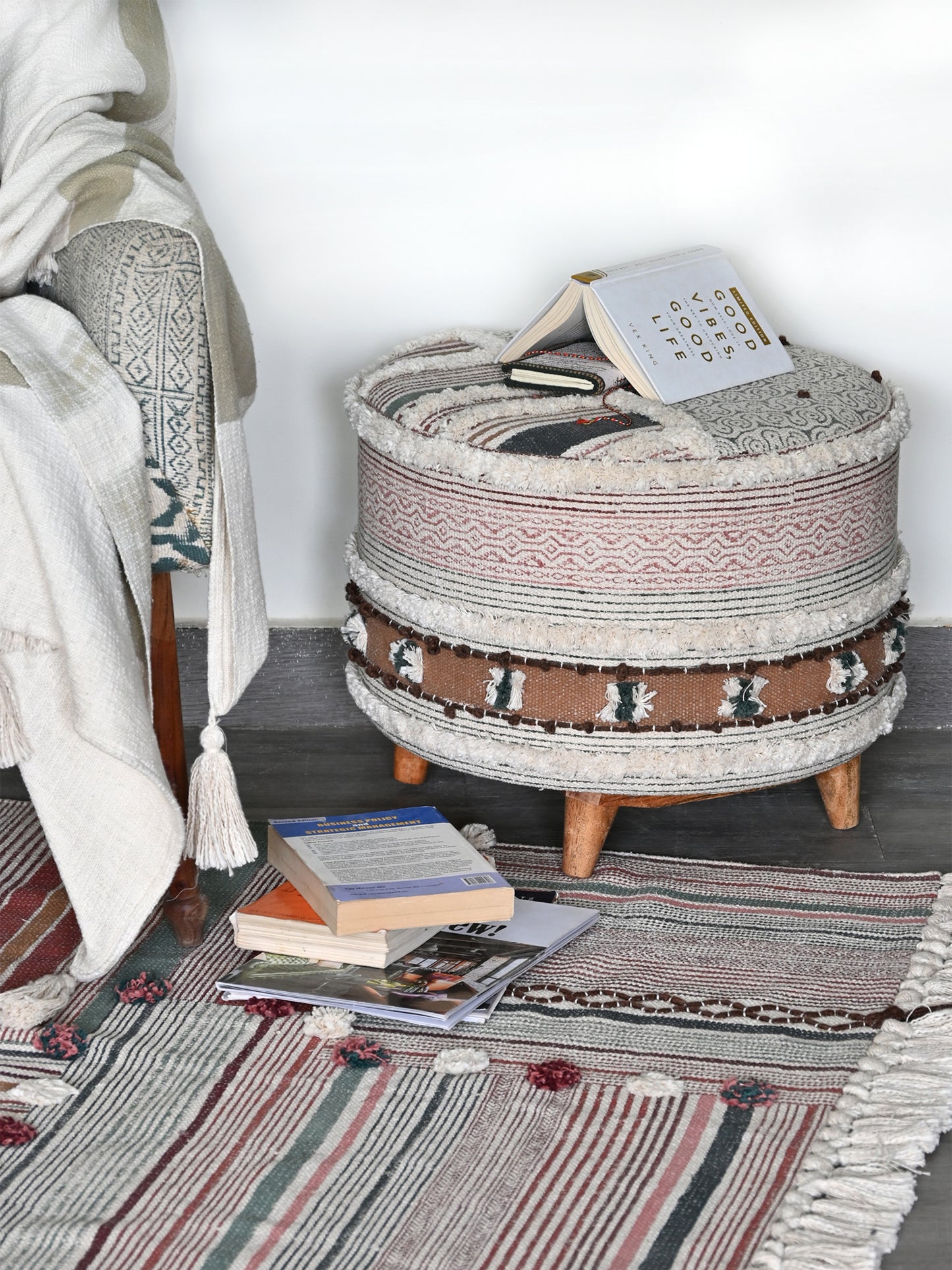 Hand Crafted in India with age old techniques and thoughtfully designed patterns. Floor Poufs or Ottomans are a great addition to any corner of your bed room / living room or balconies .They not only provide a spontaneous seating option to your space but also add coziness and warmth at the same time .