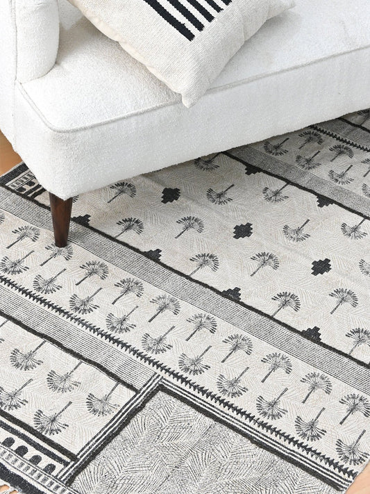 OFFPALMS BLOCK PRINTED COTTON RUG