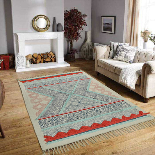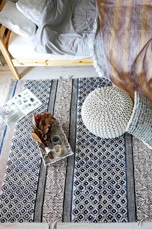 OFFLAVISH BLOCK PRINTED COTTON RUG